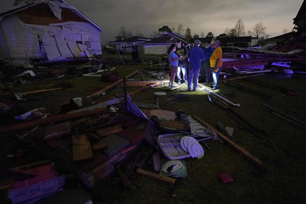 “There used to be a barn there,” Harkins said, pointing to an empty plot on his uncle’s property covered with scattered debris. He said the building was empty when the first tornado hit, and that his family is thankful nobody was hurt.