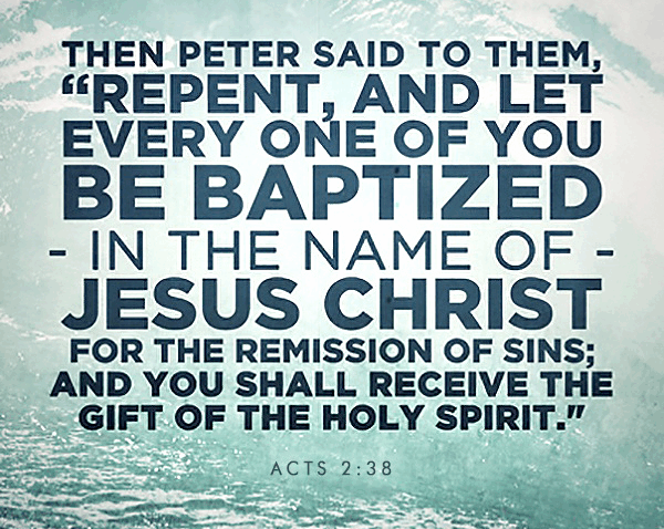 Repent and be baptized every one of you in the name of Jesus Christ for the forgiveness of your sins, and you will receive the gift of the Holy Spirit. (Acts 2:38)